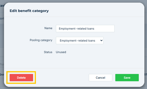 Cannot delete benefit category