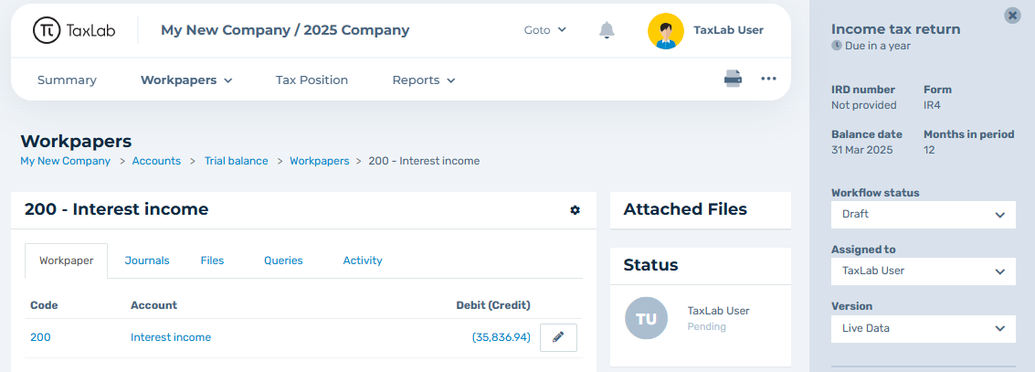 - Select Interest income to open the workpaper.