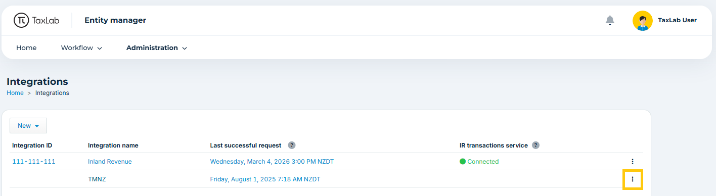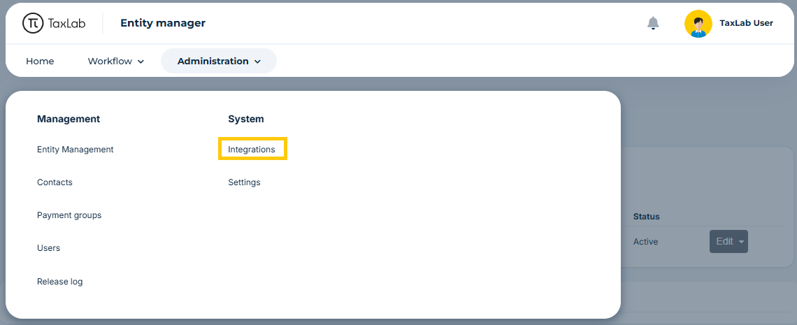 1. From the TaxLab home screen, in the navigation bar select Administration > under System,  select Integrations